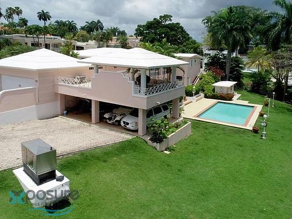 Elegant corner, with of 2,730sm and 5000sf of construction. Very large patio with beautiful garden, swimming pool, guest apartment, closed and open garage, gates, large and open terraces, electric power plant, marble floors, high ceilings. 24/7 security. Many possibilities. Be amazed by looking for its aerial view at GPS Coordinates 18.4107347, -66.0761022..