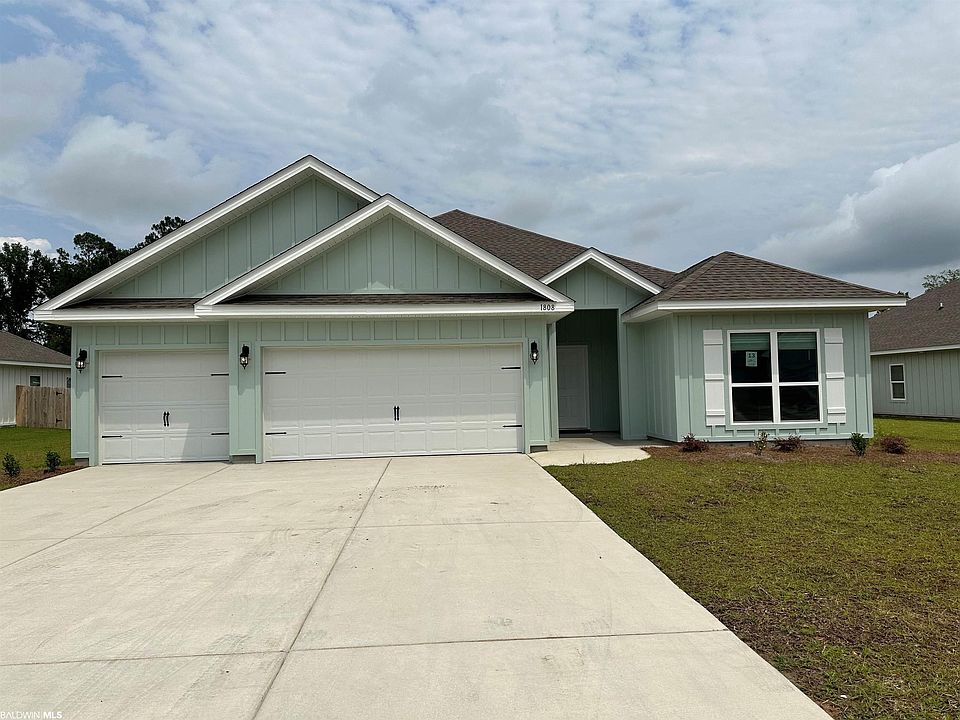 $10,000 Buyer's allowance that can be used towards options and/or towards extra closing costs. With our preferred lender on a 30-year FHA or VA loan receive 4.99% interest rate or 5.50% for conventional. Home is move-in ready and must close by 6/30/23 to receive incentives. PEACHTREE is located in northeast Foley and is tucked away off E. Peachtree St. This area is known for peace and tranquility away from the hustle and bustle, yet only minutes from S. Baldwin Reg. Medical Ctr., shopping, dining and entertainment. And of course, just a short drive to the beautiful beaches of Gulf Shores and Orange Beach. The nearby Foley Beach Express is also a convenient option to get to anywhere you want to go in south Baldwin County! This beautifully designed home has a 3-car garage and an open floor plan. Features include 9 ft. ceiling heights, with 10 ft. trey ceilings in the living room and primary bedroom. The kitchen and baths have granite and beautiful cream painted cabinets. Stainless steel appliances a huge island overlooking the living room, and a large walk-in pantry will delight anyone who loves to cook and entertain. The primary bedroom is not only very spacious, but there are 2 walk-in closets! The primary bath has a large shower, soaking tub, double vanity sinks, linen closet, and a separate water closet. Mohawk Enhanced 7.5-inch vinyl plank flooring throughout - NO carpet in this home! Your 3-car garage comes with remote openers. Hurricane fabric shields are included for every window and door in this GOLD FORTIFIED home! The entire yard is sodded with a generous landscaping package in front. The HAWTHORNE plan has a very large covered back porch to enjoy coffee in the morning or cocktails at sunset! *The home is built to Gold FORTIFIED HomeTM Certification, which may save the buyer on their homeowner's insurance. The home will also include a Home is Connected (SM) Smart Home Package.