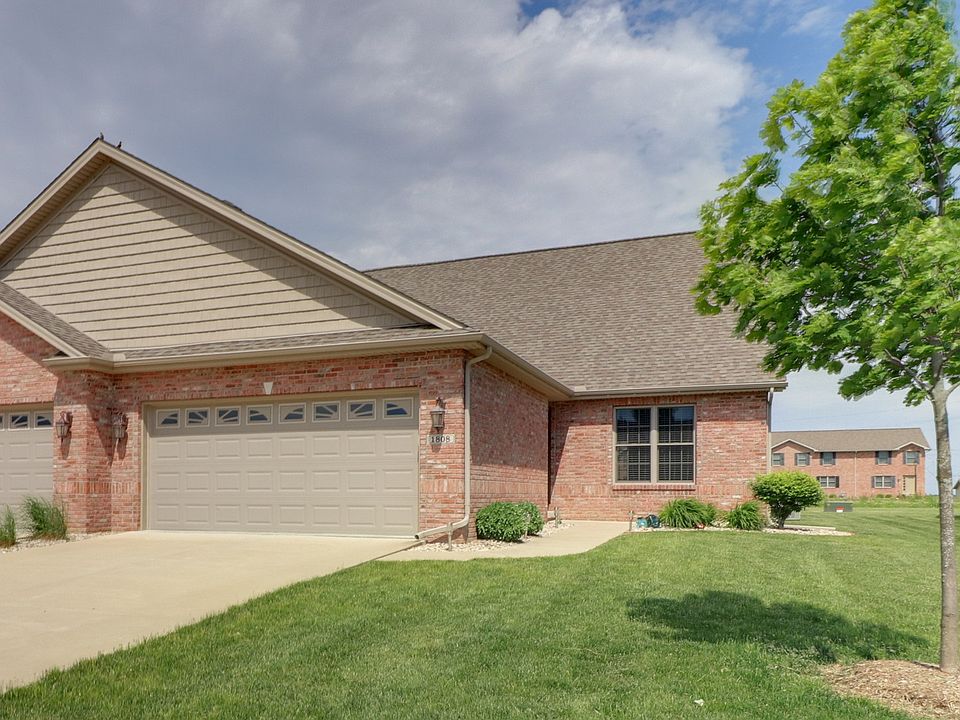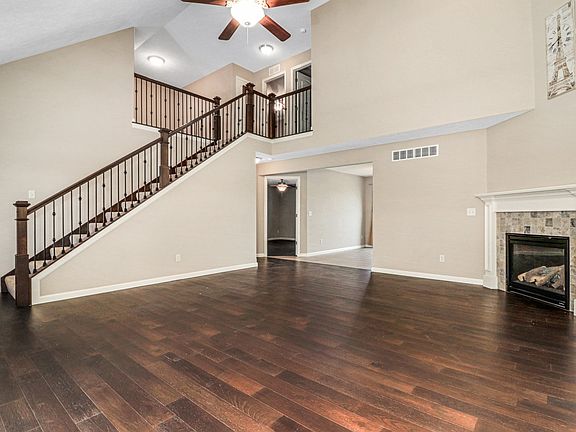 Gorgeous low maintenance 1.5 story home with views of the golf course & sunsets! Open floor plan boasting 2-story family room with rich upgraded hardwood flooring, fireplace & tons of windows for natural light. Stunning kitchen includes espresso cabinetry, granite countertops, island with breakfast bar, stainless appliances & eat-in dining area. Master bedroom is sure to impress with awesome hardwood & ensuite bath with dual vanities & huge tiled shower! Second floor features generous bedroom sizes & bonus loft area with endless possibilities! Spacious unfinished basement with egress window & rough-in for bathroom ready for finishing or storage. First floor laundry & guest bath. HOA fee of $130/mo includes: Use of Community Building with outdoor inground pool, fitness room, activity room; lawn care for grounds; irrigation system and water; insurance, reserves and administration expenses. Further details available upon request.