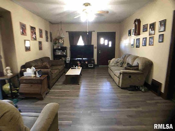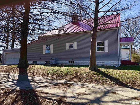 Located in the Heights in West Frankfort 3 plus bedroom with updated flooring, replacement windows, kitchen countertop and backslash, new metal roof(2 years old). Gas heat and Central Air about 10 years old. Home has upstairs bedroom suite with pool table included and bar.There is a full basement and attached garage, Range, Refrigerator, window coverings, window air conditioner, Linen closet in hall, hanging light in living room, pool table, bar. portable carport.