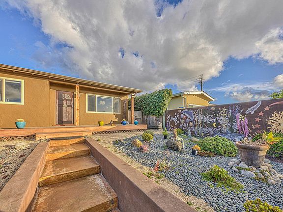 Home sweet home - w/large porch, mature landscaping, stucco walls, stamped concrete, & wall mural sets the Coastal Living scene. Enter into a welcoming home w/real hardwood floors & double pane-windows. Remodeled kitchen w/maple cabinets, nice appliances, quartz countertops, farmer's sink, skylight, recessed lighting, tile flooring, & breakfast bar. Open concept to dining and living room (w/cozy free-standing gas stove heater) making these spaces flow seamlessly. Tube tunnel skylights light up the hallway. Full bathroom with a unique flowered vanity sink. Tasteful light fixtures throughout. All bedrms are in back of the house. Primary bedrm w/sliding double glass doors to large backyard that offers overhead trellis, stamped concrete, mature landscaping, storage shed and even a treehouse. Fenced side & back w/gates. Garage w/beautiful door, lots of storage & laundry area too! Proof you can have it all w/this property. Only a short drive to beach/ocean & Monterey.