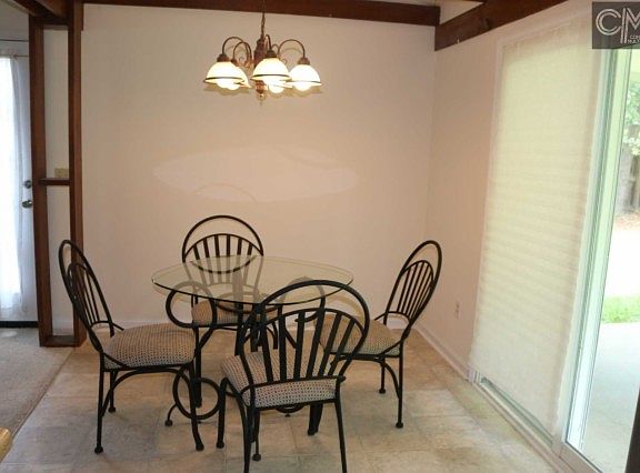 Recording studio is bonus building w2 heated/cooled rooms included in sq footage. House has new paint & carpet coming. Thermopane windows and newer refrigerator stays along with washer/dryer. Large vaulted ceiling GR with stone fireplace accent. Open floor plan and beautiful beams in kitchen and dining areas. Master suite has a private bath and the hall bath has PIZZAZZ with furniture vanity and glass bowl. Private level fenced backyard covered patio. Plenty of parking and wide driveway. Easy entrance and delightful living spaces. Detached flex building perfect for 2 offices, media/play room, crafts, art studio or man-woman cave. Convenient to Forest Acres shopping, malls, and downtown. Blue Ribbon elem sch.
