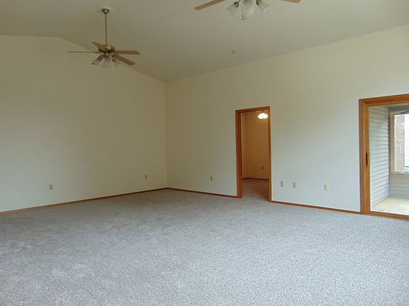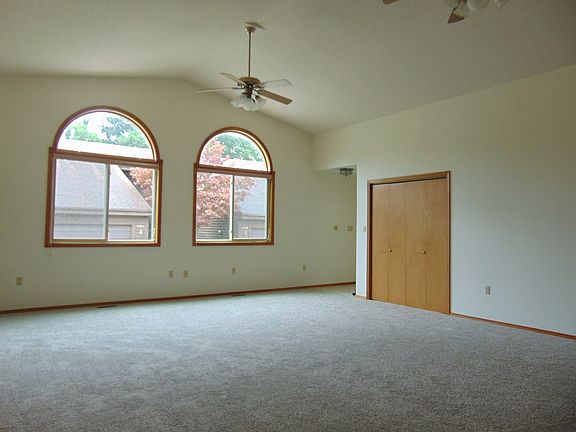 Tucked away on a private culdesac . This unit has 3 bedrooms and 3 car garage! The third bedroom has it's own separate entrance thru the third car garage, which would lend itself for a care giver, or renter. The living room has vaulted ceilings and full of brand new south facing windows..new carpet thru out home. Dining area in Kitchen, which is fully equipped with appliances and loads of cabinets. The master bedroom has dual walk in closets the size of small bedrooms!! Huge walk in closet in the second bedroom as well. The master bath has double vanities, step in shower and large soaking tub. The laundry room is large enough to have crafts or sewing area even a home office. Hall bath is full with tub/ shower combo. Pull down attic storage in double garage (separate from the third car garage). All season sun porch adds to the living space. Across the street from Crestview Park and So handy to the University, shopping.