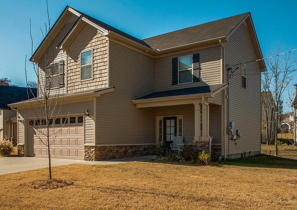 This wonderful floor plan is the one builder chose for their model home. Great room w/fireplace open to dining and kitchen. As you approach the home you see the front porch and lovely exterior stonework.