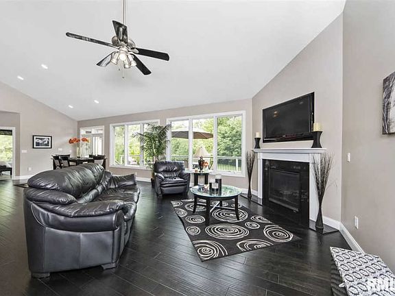 - INTERIOR AMENITIES: Garage Door Opener(s), Ceiling Fan, Wet Bar, Ceilings/Cath/Vault/Tray, Central Vacuum, Radon Mitigation System, Cable TV Available, Solid Surface Counter Top, Window Coverings, Attic Storage, Built-In Bar, Surround Sound Wiring, In-Law Quarters