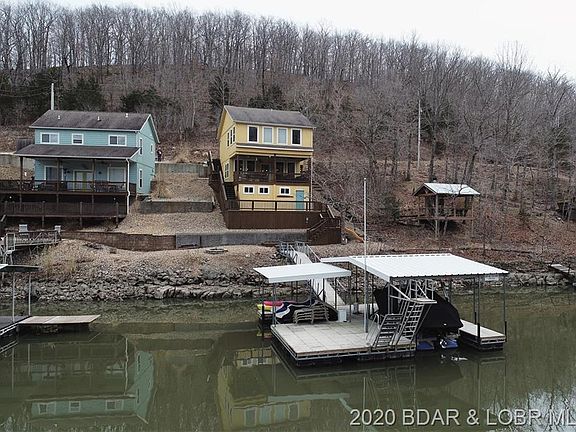 Start living your best lake life with this colorful "TURNKEY" house in a Jimmy Buffet style neighborhood with level parking. This upgraded home features two levels for enjoyment. Upper level boasts a large lakeside master suite with lots of windows and plenty of closet space, foyer area with coat closet, two guest bedrooms, guest bath and cozy sitting area. Downstairs offers plenty of room for entertaining guests with spacious living area and access to the large covered deck. Custom kitchen with newer appliances and granite counter tops w/breakfast bar round out this exceptional space. Included is the adjacent lot featuring a covered deck boasting a gorgeous fireplace and access to the lake. Custom concrete dock with slip if you remove plugs it will accommodate a 10X28, jump platform and wet steps is the ideal space for water sports and lounging. This homes features an abundance of storage with secure dry storage room below the deck and a storage building. HVAC system new 2018.