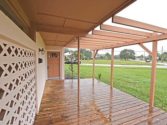 Pool home with trendy pergola entrance. This move in ready home has 4 bedrooms and 2 baths. Stone fireplace, Stainless Steel Appliances, Newer A/C, and updated tile floor. Over-sized Florida room with kitchenette located right off the pool. Located on a nice sized corner lot. Come see your new home today!