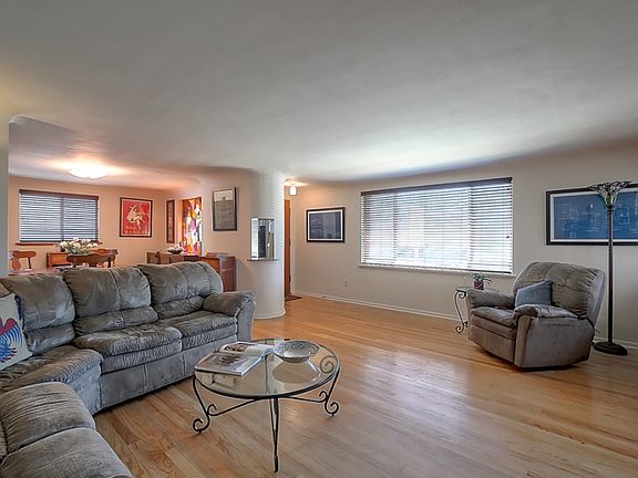 Ready to move in charming 3 bed/1.75 bath mid century home in the heart of Wallingford. 100 wlk score! 15'x18' sun-drenched living room w/ coved celngs, brick FP,& lrge picture window. Gleaming hardwood floors on main floor. X generous DR opens to lrg chef's kitchen w/great counter space & SS apliances. Prfct for entertaining. Extra spacious rec room, very lrg master with own bath. Huge utility room. Detached 2 car garage w/ extra parking. Fenced yard w/great chicken coop! An urban oasis! AC!
