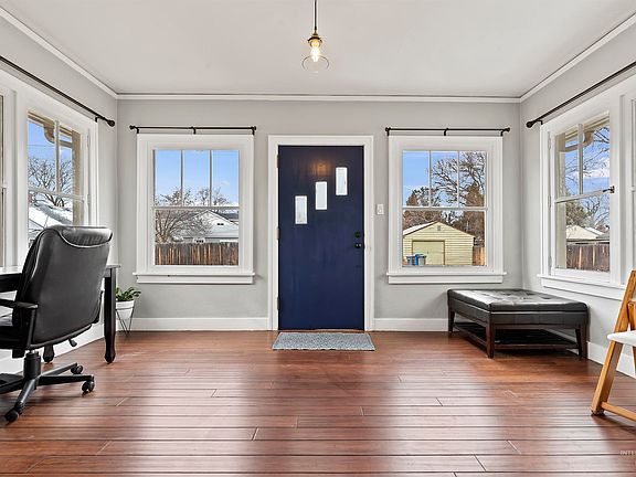 Freshly painted modern interior colors adding light & brightness. Entry way is lg enough it could function as an office or sitting area w/6 framed windows for so much light. Nicely sized living rm, real wood burning brick F/P. H/W flooring throughout home. Alcove leading to formal dining w/lg framed windows. Completely updated kitchen includes all new plank flooring, newly painted cabinetry & walls, brushed nickel hardware, some glass cabinetry, new SS double basin sink, newer SS oven range, new light fixtures, plumbed for D/W. Lg charming master suite. Updated bathroom w/tiled shower surround, new vanity & fixture, new flooring & paint. Back bedroom has an abundance of wood framed windows allowing plenty of light. Stunning! Full basement includes dog washing shower! Lg E facing backyard big enough for a future pool. Garden area & graveled oversized RV parking area. Some new wood fencing w/new wood/iron gate for access to RV parking area. Great corner lot. Close to shopping & Dining & easy freeway access.