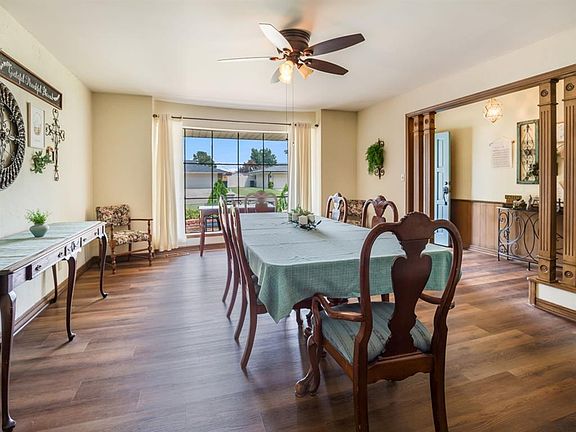 Welcome to your dream home, perfectly nestled in the heart of town on a quiet street. This delightful 3-bedroom, 2-bathroom plus 2 car garage home exudes warmth and character, offering the perfect blend of modern amenities and timeless charm. Step inside to discover a spacious living room, complete with a cozy, inviting fireplace. The wonderful sunroom floods the space with natural light, creating a serene spot to relax or enjoy your morning coffee. The kitchen features updated stainless-steel appliances, an abundance of cabinet space, and eating area for casual dining. For more formal occasions, the separate dining area can double as additional living space, offering versatility to suit your needs. All bedrooms are generously sized, providing comfort and privacy for everyone in the household. The inside laundry room has nice storage to keep everything organized and out of sight. Outside, the backyard is a true oasis! Enjoy summer BBQs and outdoor play on the covered patio and extra concrete space, all enclosed by a lovely vinyl fence. Plus, there’s a storm shelter for added peace of mind during storm season and a storage building for all your tools and toys. Conveniently located close to everything Shawnee has to offer, this home is a rare find in a fantastic location. Don’t miss your chance to own this charming home—schedule a showing today!