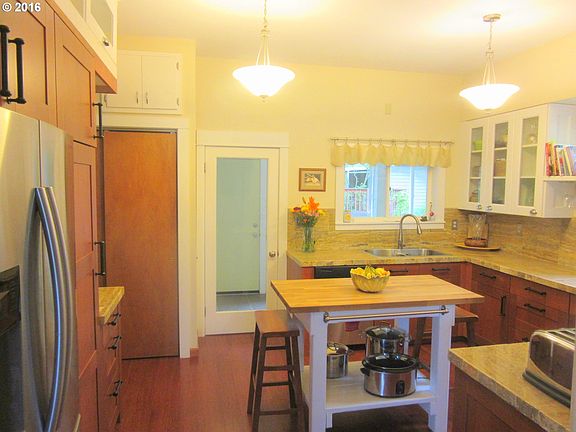 Beautiful 4 bedroom, 3 bath home in the heart of Southside La Grande. Pride of ownership shines in the numerous updates. Lots of light from skylights and large windows. Warm woodwork adds color. Granite tile in the kitchen and baths. Private and landscaped backyard. Off street parking and garage and workshop. Raised decks with numerous shade trees. Close to downtown - walk to the farmer''s market or shopping.