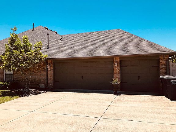The entry welcomes you into a gorgeous living area with a view across the back that will please you. Sit, relax & be mesmerized at the extravagant easy maintenance landscaping and waterfall behind your private vinyl fencing. The custom open floor plan will make entertaining a joy! The chef's kitchen complete, with bar & breakfast nook, pull out kitchen shelves will have room for everyone, plus formal dining. Master suite is your own retreat with whirlpool tub, corner shower, granite countertops & double sinks with tons of storage. The office could be used as a 4th bedroom. New roof 2018. Plantation shutters throughout home. Walking trails, fishing lake right across the street. Home located on corner lot. New water heater and additional insulation. Contact info: 405-481-3077