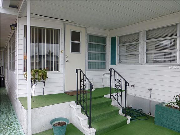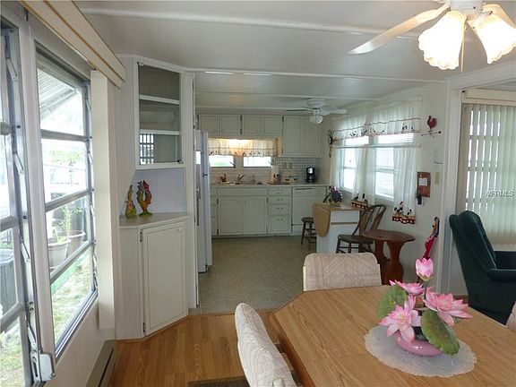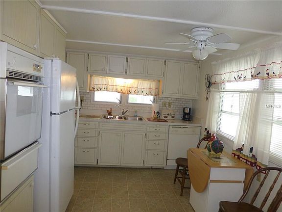 GOLF CART INCLUDED IN THIS SALE! Take a good look at this immaculate home for your discriminating buyer! A large master bedroom with an enclosed lanai that could be used for another bedroom. This home has newer laminate flooring in living room, dining room, hall and bedroom. A full bathroom in the utility shed plus washer and dryer makes for easy living in this outstanding community. The location of this home is right by the amenities. The clubhouse, workshop and everything else is just at the top of the street. Furnishings are mostly complete with dining room table, couch in living room, complete bedroom set and lots of kitchen furnishings. Just move right in!!!!!
