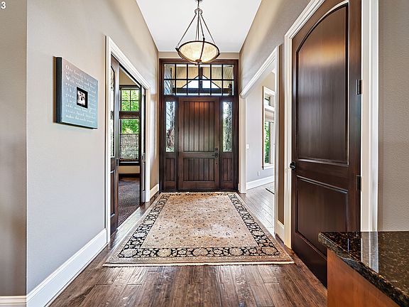 Amenity Rich! Eslinger Built Custom. Primary on the Main, His OS 1 car/Hers 3 car. Garages. Stunning Landscaping with Custom Pool w/ jets. Gourmet Kitchen with Chef's Pantry and Butler's Pantry w/bar sink. Rich Warm Wood tones Vaulted Ceilings Heights n Living Room/ and or Executive Office and Dining Room, with multiple Built Ins and FPL.Black Walnut Cabinets, Upgraded Lighting t/powder room has stunning backlit quartz counter with grasscloth on the walls, Large Storage up rocked and painted could be converted to Office or Bedroom, Upper and lower garages have California Style Closet cabinetry, lower Garage has finished floors and solid Maple Workbench top, Primary Suite Bath with heated floors and heated bidet, custom window coverings t/o the home,LR or Executive Office Vaulted with built in, shelves and 8 laterals, Warming Oven, Prep sink disposal, farm sink w/disposal Butlers Pantry with Copper sink, Chef's Pantry.