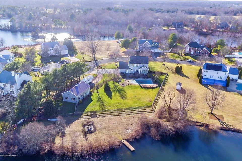 Breathtaking WATERFRONT Colonial in highly sought PRIVATE CUL DE SAC development. 2 ACRES of property surrounded by PRIVATE LAKE. Incredibly convenient LOCATION with a short walk to Wall High School & Communications school. Features include masterful 2 Story Foyer with hardwood floors, 9 foot ceilings throughout, library/sitting area, oversized dining room with french doors. Large family room with stunning views of your private lake. FULLY FINISHED BASEMENT with electric baseboard heat. 1000 sq ft Pole barn with electrical hook ups. PRIVATE DOCK, paver patio, INGROUND POOL and WATER RIGHTS. The perfect choice for you, the next owner.