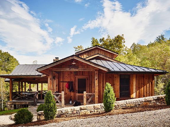 This architect-designed custom residence, featured in Southern Living and Garden & Gun, offers rustic mountain luxury on almost 143-acres of premium wildlife habitat, including over half a mile of private, spring-fed trout stream home to native brook trout and wild rainbows. Crafted with stunning reclaimed wood and natural materials throughout, this exceptional property showcases wide-plank reclaimed pine floors, mahogany doors, and local blacksmith hardware and finishes. The spacious great room with vaulted ceiling centers around a Jtul wood-burning stove and gourmet kitchen outfitted with Sub-Zero appliances, a Lacanche range, Virginia Alberene soapstone counters, and cabinetry made from reclaimed barn wood. Four bedrooms and two full baths with natural stone and heated floors provide luxurious accommodations, while the master bedroom opens directly onto the porch, inviting outdoor enjoyment. True to its classic hunting and fishing lodge inspiration, the property embraces its natural setting with an outdoor shower/heated bathroom and 700 SF covered porch featuring a vaulted ceiling, black locust flooring, and large outdoor fireplace built from Virginia mountain stone. An incredible timber-frame barn includes a bourbon room and a climate-controlled wine cellar built into the hillside, surrounded by hand-laid stonework. Additional quality features include fiber internet, standing seam metal roofs, copper gutters, 12KW solar power system, geothermal HVAC, and dual water heaters (40-gallon heat pump + 80-gallon propane backup). With vibrant wildlife including whitetail deer and wild turkey, and miles trails for hiking, fishing, hunting, horseback riding, and ATV adventures, this is truly a sportsman's paradise.
