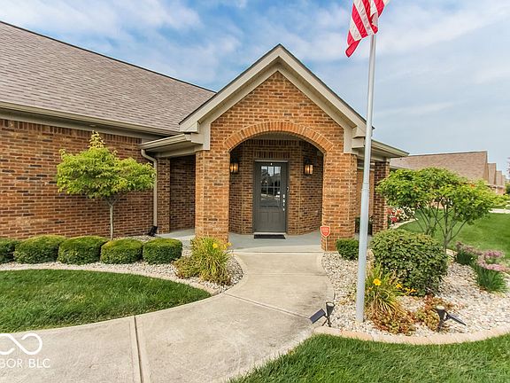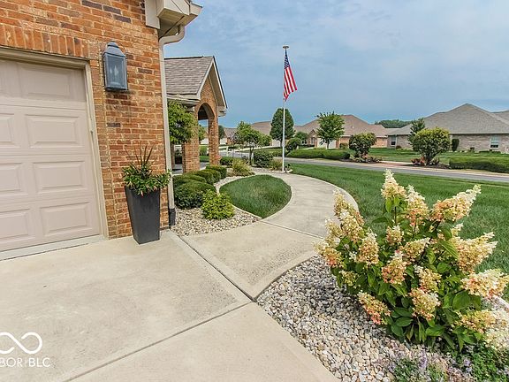 Don't miss your opportunity to live in this highly desirable low-maintenance community in New Palestine, where you no longer have to deal with lawn mowing and snow removal! Situated on an impressive corner lot, you enter the home welcomed by rich gleaming hardwood floors and volume cathedral ceiling. The spacious living room is perfect for entertaining and opens into the dining room, creating an ideal space that is great for gatherings of family and friends. The kitchen with center island surrounds you with rich wood cabinetry and gorgeous granite counters. There's even more space to relax and entertain on both the covered patio and open patio with tranquil water view with fountain - plus a wonderful fenced back yard! The spacious master suite features a tiled walk-in master shower, double-sink raised vanity and large walk-in closet and has an entry to the patio. Bedroom 2 and Bath 2 are ideally located away from the master suite, providing fantastic privacy for both. The possibilities for the amazing 25'x10' upstairs bedroom are endless, from a 3rd bedroom, craft, hobby or sewing room, work-out room or a second living space. Forget the lawn mower and snow shovel- have more time to enjoy life and the freedom to travel when you live in this truly amazing home!