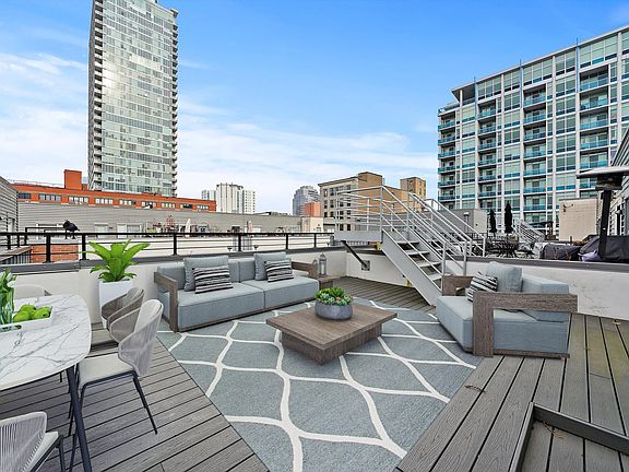Spacious 2Bed/2Bath condo with a MASSIVE private rooftop deck located in a gated community with indoor garage parking! Open concept floor plan offers an abundance of natural light from the large windows and also features a gas fireplace. The kitchen boats stainless steel appliances & large island with room for seating. The primary bedroom features an ensuite bath with double vanity & large soaking tub. Second bedroom is very generous in size. Tons of closet spaces and newly finished hardwood floors throughout the entire place. Newer washer/dryer. Indoor garage parking and a storage room are included in the price. Large private rooftop deck with nice views just for you. Amazing value for a great location - Easy access to all that the neighborhood has to offer including coffee shops, Fred Anderson dog park, access to lakefront and Soldier Field via 18th Street, multiple options for public transportation right outside, and many shops and restaurants! Take a 3D Tour, CLICK on the 3D BUTTON & Walk Around. Watch a Custom Drone Video Tour, Click on Video Button!