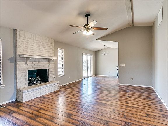 Don't miss this cutie in Moore Schools! A 3 bedroom, 2 bath home close to shopping, restaurants, a fabulous park and a walking trail. As you enter the home, you are welcomed by vaulted ceilings, fresh paint and flooring, and the warmth from the sunshine entering the windows. Enjoy the gas fireplace on those chilly nights. Check out the spacious updated kitchen with a cozy dining area overlooking your yard and covered patio. The laundry room is located right off the kitchen for convenience. The deeper garage makes it easier for those longer trucks and/or SUV's. Make your way down the hall to the spacious bedrooms and a full hall bath The primary bedroom awaits at the end of the hallway with bright windows, private en suite and a walk in closet. Schedule your private showing today!