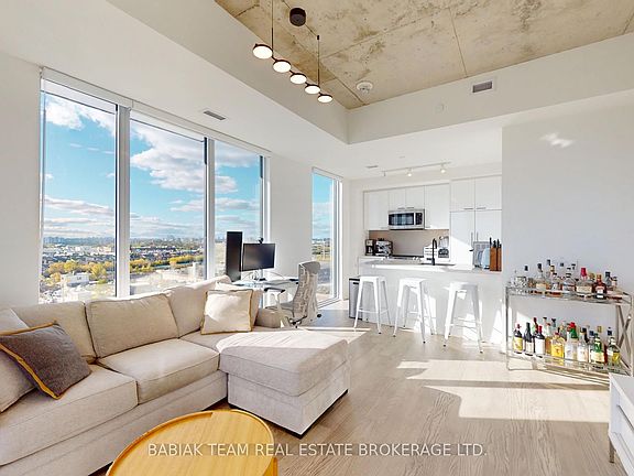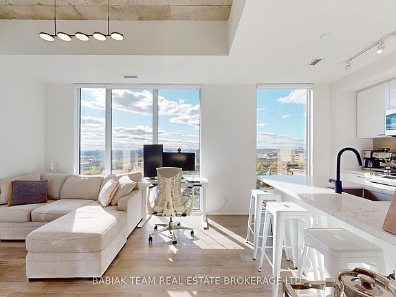Stylish 2-bed, 2-bath corner suite with 803 sq. ft. of sun-filled living space and southwest views. Features floor-to-ceiling windows, high ceilings, a modern kitchen with breakfast bar and full sized appliances, private balcony, ensuite laundry, and a functional foyer that separates the entry from the main living area. Includes parking with EV charger and a spacious storage room conveniently located at the same spot. Enjoy boutique amenities: fitness centre, bike repair room, pet spa, co-working lounge, and more - all a short walk to Corso Italia, Stockyards Village, the Junction, parks, cafes, transit, and major highways. Tenant pays for hydro & water.