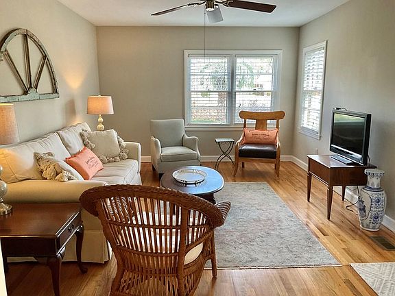 Charming starter home with many nice updates! One -owner home that is in move-in condition!! Refinished hardwood floors are throughout most of home. Interior Walls and Exterior trim recently painted!!! Great Room with ceiling fan and pretty windows. Kitchen with brick-look vinyl,stove, DW, fridge,MW,washer and dryer.water heater replaced recently. Wooden countertop with bar/stools plus dining area. Hallway with hardwood floors to bedroom area. Has two closets, ideal for linens and storage. Attic storage also. The Three bedrooms are large enough for king-size beds in them! Very nice closets,walk-ins. Two separate closets in master bedroom. Terrific backyard that is fenced with lovely landscaping ,greenhouse and lots of privacy. Home is in walking distance to Magnolia School that has a great playground for the kids ! Home is in nice location, very quiet untrafficked street,close to YMCA, shopping and churches. This home would be an ideal rental home for an investment, but also wonderful home to live in and to enjoy!! Some of furnishings are negotiable/for sale and could remain in home !