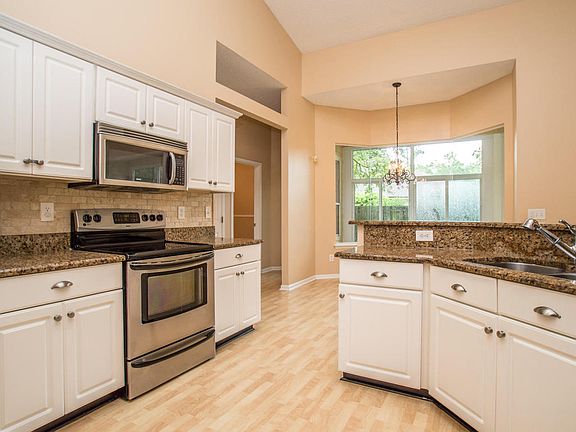 This is your chance to live in Eagle Harbor with all the great amenities and elementary school in walking distance w/ no CDD fees, only management fees remain. The cul-de-sac location & mature landscaping add to its curb appeal. This beautiful home features a large family room with vaulted ceilings and fireplace w/ custom mantle & built-ins. Glassed in Florida Room (not included in square footage) has triple sliding doors that open to family room. This add'l space is perfect for entertaining or relaxing as it overlooks the fenced backyard. The kitchen features granite countertops w/ tumbled marble backsplash and SS appliances. Home has wood laminate flooring in main living areas and is freshly painted inside and out.