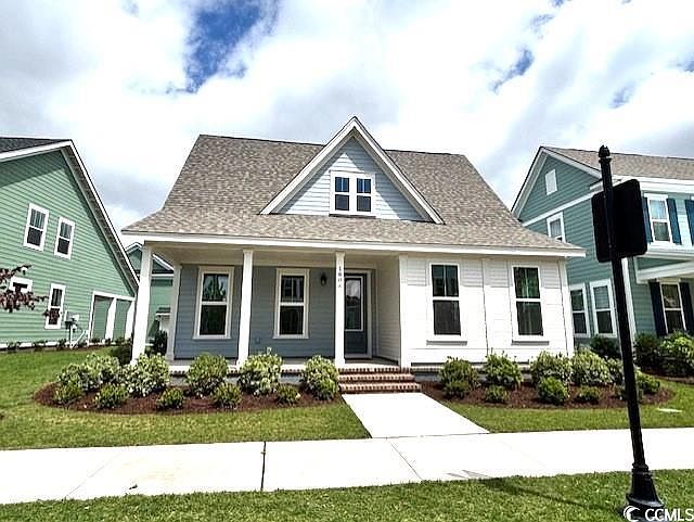 Builder is a Popular Regional Builder in North Carolina/South Carolina markets for over 30 years building Low Country/Coastal Style New Homes. Always paying attention to architectural details. Quality and Customer service is tops with this builder! Now building in SayeBrook...a new home community centrally located . SayeBrook is a master planned community near SayeBrook Shopping center, restaurants, 2 miles from ocean , near Market Common District, airport, and Murrells Inlet. All measurements and sf. are estimated not guaranteed and buyers should measure for room sizes. Note: there is an attached two-car garage that is not reflected in total under roof sf. This Easton Plan has a separate dining room, kitchen with island for additional seating, Spacious Primary ensuite is on first floor along with a private guest ensuite also located on first floor along with powder room. Second floor offers a loft and two bedrooms, one bath. Tile floors in all baths and laundry. Spacious open plan with rear large covered porch. Hardi-plank Exterior, Raised slab foundations, Natural Gas, Lawn sprinkler and security systems installed. Detached 2-car garage 400 sq. ft. is NOT included in total shown sf. .Life is good at Sayebrook. Beautiful tree-lined streets with sidewalks, parks, w lakes, Amenity Center is completed with community meeting house, pool, covered pavilion, playground, basketball court,4 pickleball courts, and fire pit. Coastal, small-town charm within walking/golf cart distance to Sayebrook Town Center. A natural gas community. Come tour our staged model home and available homes for quick move-in!