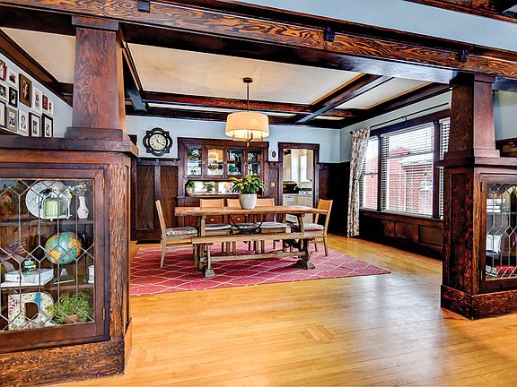 A picture-perfect Craftsman-style Bungalow, located in the downtown pocket of the North End. Born in 1913, the home exemplifies the architectural style of the building era, complemented by stunning upgrades. Radiating with curb appeal, guest are invited in by a classic front porch. Upon entry, the rich history of the residence has been retained in the grain of the remarkable woodwork, expansive wood floors, and period-style details. The traditional Bungalow design between living, dining, and kitchen is ideal for entertaining, accentuated by an open flow through wide entryways and extra tall ceilings. Hearty box-beamed ceilings artfully contrast with the modern palette Large wood windows illuminate the interior with natural light, lending an airy feel to the warmth of the wood details. Centered at the heart of the home, the dining room features gorgeous built-ins with leaded glass fronts, and a perimeter of wood wainscoting w/ intricately textured inlay. Three bedrooms and a sun room are located on the main-level, and generous storage is located on the lower-level. A spacious kitchen features a cozy dining nook with scores of windows. New light fixtures & fresh paint throughout update the home to reflect contemporary tastes, while complementing the historic character of the home. The location provides downtown amenities just blocks away on bike, foot, or car via the popular Bannock Street route, and the N End's treasured attractions like Hyde Park & Camel's Back. Nearby access to Esther Simplot Park, the Greenbelt, and Boise River Park.