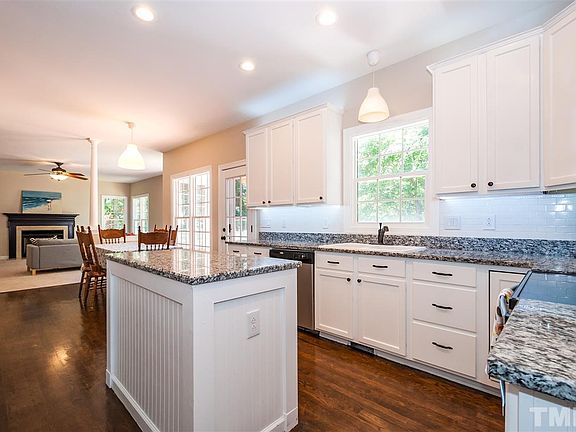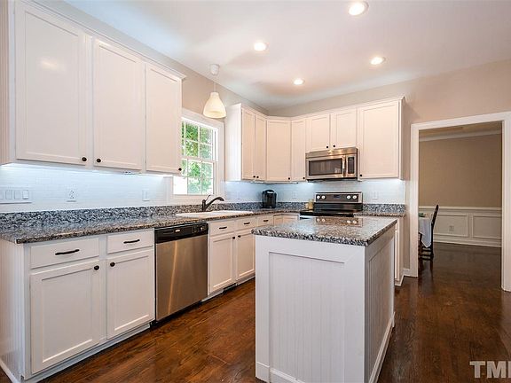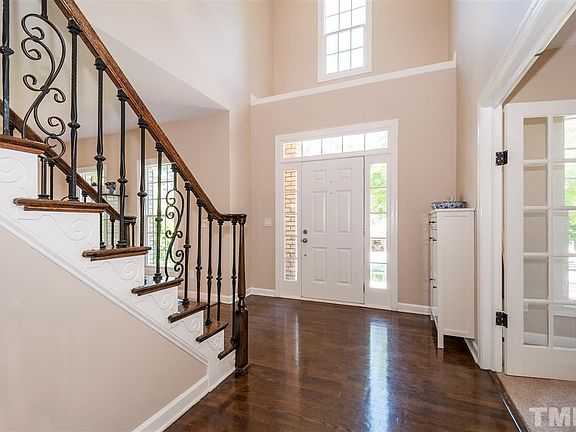 Spacious 4 bedrm & a bonus rm on a fenced lot. 2 story foyer w/open wrought iron staircase, gleaming hardwds, 1st flr office w/french doors, formal liv, din rm has wainscot molding & trey ceiling. Fabulous open kit offers granite counters, tile back splash, center island & SS appl's. Breakfast area has access to the oversized deck. Lrg master bedrm has 10' ceiling, private bath w/dual vanity, garden tub, sep shower & walk-in closet. Walk-in storage. Convenient to shopping, dining, Lifetime Fitness & I-540