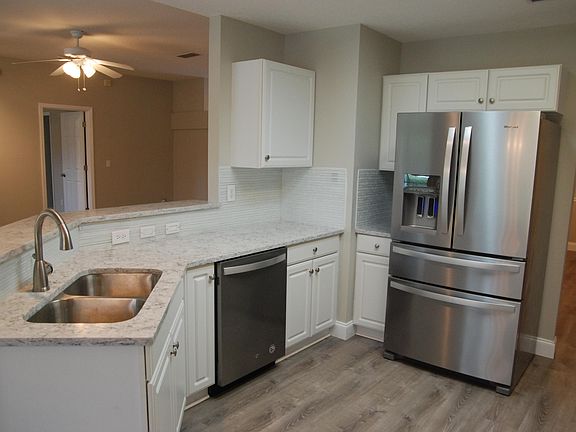 Renovated 4/2 with quartz countertops, all new stainless Whirlpool appliances, new flooring throughout with ''Lifeproof'' vinyl plank flooring, new carpet in bedrooms. Master bath features new tile, new counter-tops & faucets. White kitchen cabinets with pull-out drawers in bottom cabinets & new backsplash. Large back covered porch with view of lake. 2018 roof. Fresh updated grey-beige paint inside and out. Short Cul-de-sac street. Fleming Island Schools.