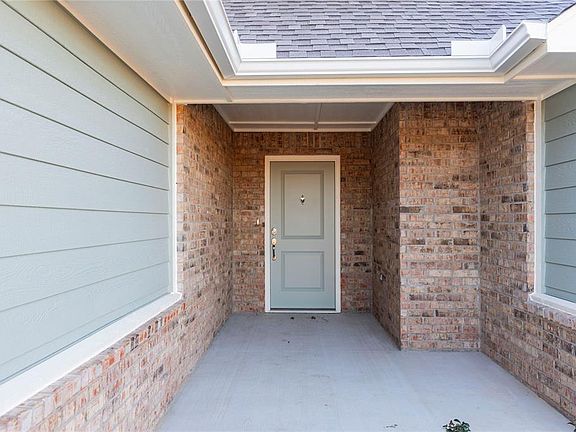 FENCING AND BLINDS INCLUDED! Our Brittany Bonus Room floor plan includes 2,055 Sqft of total living space, which includes 1,900 Sqft of indoor living space & 155 Sqft of outdoor living space. There's also a 385 Sqft, two car garage w/ a storm shelter installed. Home offers 4 bedrooms, 2 full baths, a pwdr room, 2 covered patios, & a utility room. Living room is large & welcomes wood-look tile, windows with faux wood blinds throughout, a ceiling fan, & wires for your TV. Kitchen features granite or quartz countertops, stainless-steel appliances, wood-look tile, well-crafted cabinets w/ decorative hardware, a center island, & stylish tile backsplash. Primary suite is opposite the kitchen & supports carpet flooring, a ceiling fan, & the perfect sized windows. Primary bath holds a dual sink vanity w/ elegant countertops & backsplash, a walk-in shower, an elongated water saving toilet, & a HUGE walk-in closet! Outdoor living is covered & offers fully sodded yards w/ smart home irrigation control and fencing. Other amenities include a tankless water heater & MORE!