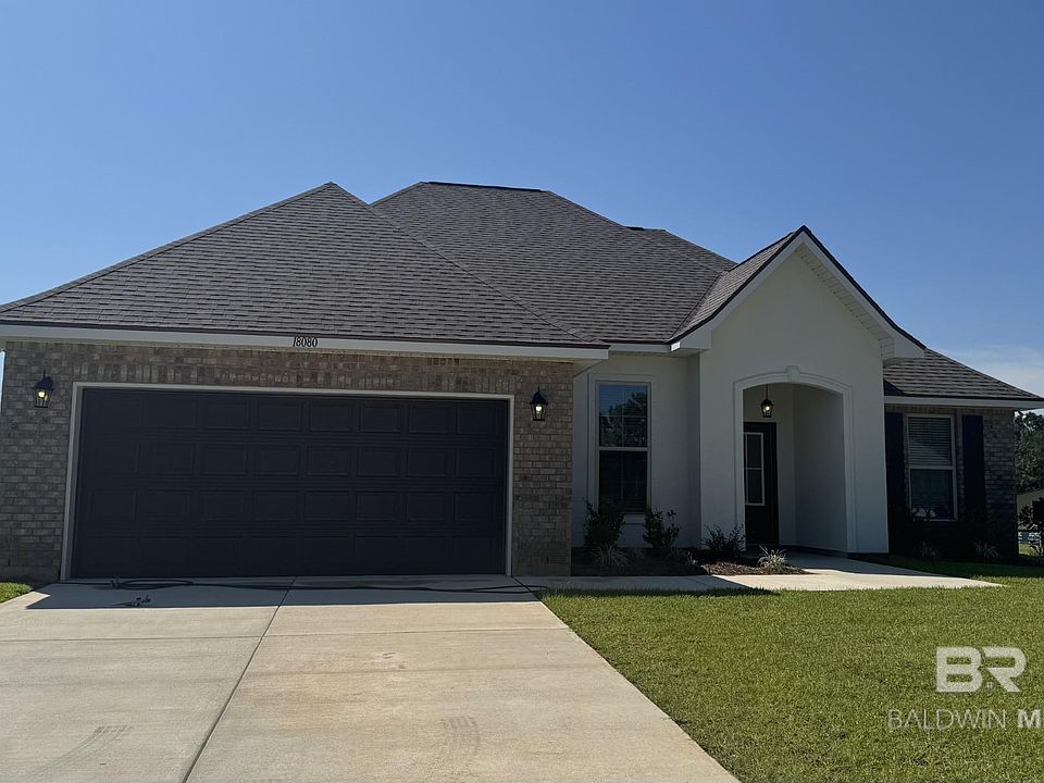 Awesome builder rate plus FREE front gutters. Restrictions apply. The ROSES V C in Ridge at Robertsdale community offers a 3 bedroom, 2 full bathroom, open and split design with flex space and computer desk/niche. Upgrades for this home include wood look ceramic tile flooring, blinds for the windows, gutters, quartz countertops, a refrigerator, custom tiled shower with frameless door in master bath, framed mirrors in all baths, upgraded cabinets, undercabinet lighting, LED coach lights on each side of the garage, and more! Special Features: double vanity, garden tub, separate shower, and 2 walk-in closets in master bath, tray ceiling in master bed, kitchen island, walk-in pantry, covered porches, LED lighting throughout, recessed lighting, crown molding, ceiling fans in living and master, smart connect Wi-Fi thermostat, smoke and carbon monoxide detectors, garage door with 2 remotes, seasonal landscaping package, architectural 30-year shingles, and more! Energy Efficient Features: water heater, kitchen appliance package with electric range, vinyl low E windows and more! Energy Star Partner. Gold Fortified Certified home. Estimated completion July 2025. Buyer to verify all information during due diligence.