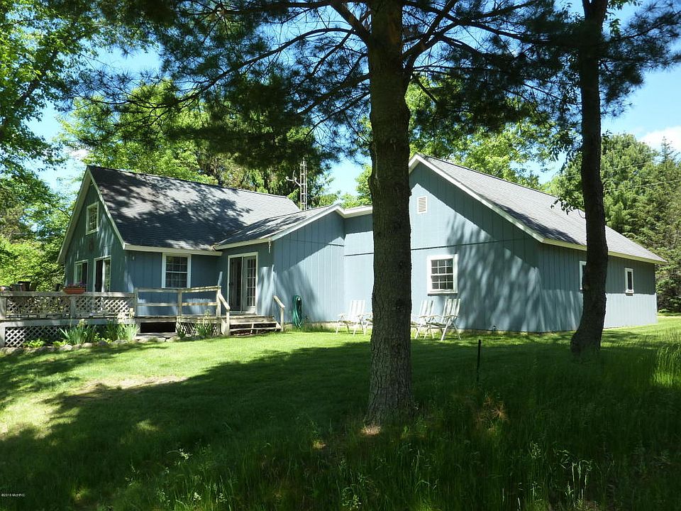 Muskegon River Chalet. Perfect get away or year round home. All the comforts plus 100 feet on the beautiful Muskegon River. Gentle slope down to the waters edge. Charming knotty pine interior, master suite with private bath, main floor laundry, huge deck off the main living area. All this plus a 24 x 30 attached garage and a 24 x 40 pole barn.There is also a 1.3 acre back lot.