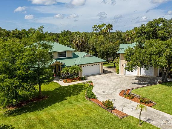 This well maintained custom built home situated on 1.78 acres is located in the Riverwind Cove community. This subdivision is off the scenic CR 78 in Alva. This riverfront gulf access property features 3 bedrooms+den/3.5 bathrooms. The den has a full-size closet so, this can easily be considered a 4th bedroom. The detached 2 car garage has a full bathroom and upstairs has an enclosed air conditioned loft. Perfect for a media or game room. Two scenic boardwalks leading you out to your own private boat dock and fire pit. Enjoy your morning coffee on the Gazebo over looking the river. There is a spacious back lani with plenty of room for a pool. The master bedroom is re-enforced as a "safe room" for storms and heavy winds featuring it's own a/c unit, electric shutters and generator hook up. His and her walk-in closets, one has a built in safe for your valuables. Double sinks, soaking tub with separate large walk-in shower. Upstairs has two over-sized bedrooms that are joined by a Jack and Jill bathroom. This property has so many more custom features you will need to see for yourself. Schedule your showing today to see this hidden gem. You will not be disappointed.