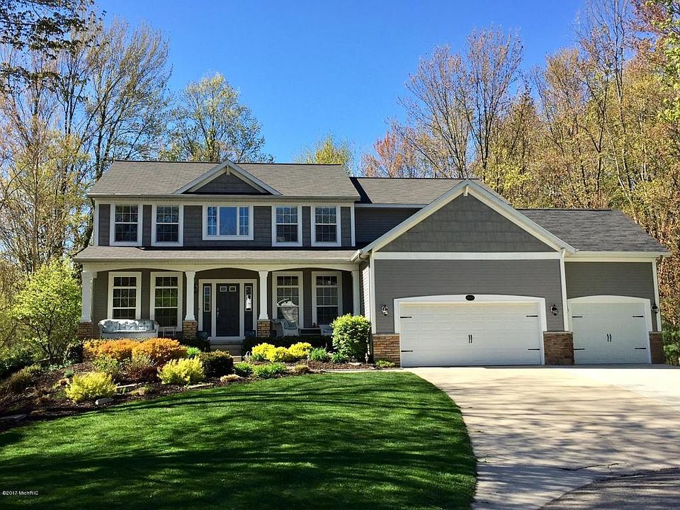 You'll want to call this one your home! Dock your boat in your own 40' x 15' slip after cruising Spring Lake and Lake Michigan and it's just a quick golf cart ride away from this gorgeous 6 bedroom, custom home in desirable Bayou Meadows. Tucked away on almost 1 acre of wooded serenity on a quiet cul-de-sac, you'll feel like you're at your own private resort. From the moment you enter the 2 story foyer with open staircase and view the woods from the 2 story windows in the Great Room, you'll fall in love. Soaring ceilings, a stone fireplace, wood floors, formal and informal dining, beautiful kitchen with center island and butler pantry, main floor den/office and bedrooms on every floor combine to make this a comfortably elegant home with plenty of room for entertaining and relaxing.