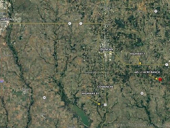 445 +/- ACRE TURN-KEY CATTLE RANCH WITH A GORGEOUS 5,121 SQ FT CUSTOM HOME, IN-LAW SUITE AND RANCH HAND LIVING QUARTERS ALL OUTSIDE OF DUNCAN ON A PAVED ROAD! Finding a ranch this well-appointed is rare...from the moment you enter you will experience the beauty this ranch has to offer. The Custom 5,121 sq ft main home has a beautiful living room with a rock fireplace, custom wood features throughout, kitchen has a nice open feel with all stainless-steel appliances and wood floors. Newer roof, huge mudroom/laundry room with sink and tons of room for storage. There are 4 bedrooms, each have direct access to a bathroom and walk-in closets. The master bedroom has a private fireplace, huge bathroom, shower, tub, and closet. Upstairs you will find a game room that could be an additional bedroom/office, full bathroom and not only is this home set up for a large family to live, the large back covered porch provides plenty of space for entertaining guests! The land is absolutely breathtaking and features 9 ponds providing plenty of hydration for livestock and abundant fishing opportunities, miles of new exterior and interior fencing setup with an alleyway that serves all pastures leading into a nice set of pipe corrals making sorting and working cattle a breeze. In addition to the home, guest apartment and additional living quarters there are the following buildings: -40'x50' new built in last year, fully insulated pole barn shop with electric, concrete floors, 3 roll up doors, paneling 8ft up throughout with car lift office area, and bathroom -40'x60' all steel equipment shed that is open air on two sides, perfect for implements and tractors -50'x60' shop with full living quarters, oversized garage, tack/laundry room and 22 ft overhang to allow horses or nursing cattle cover from the sun -60'x20' grain storage area with two 20' containers, a 24'x10' loafing shed along with a covered chute with water and electric Move to the farm and start enjoying life again!