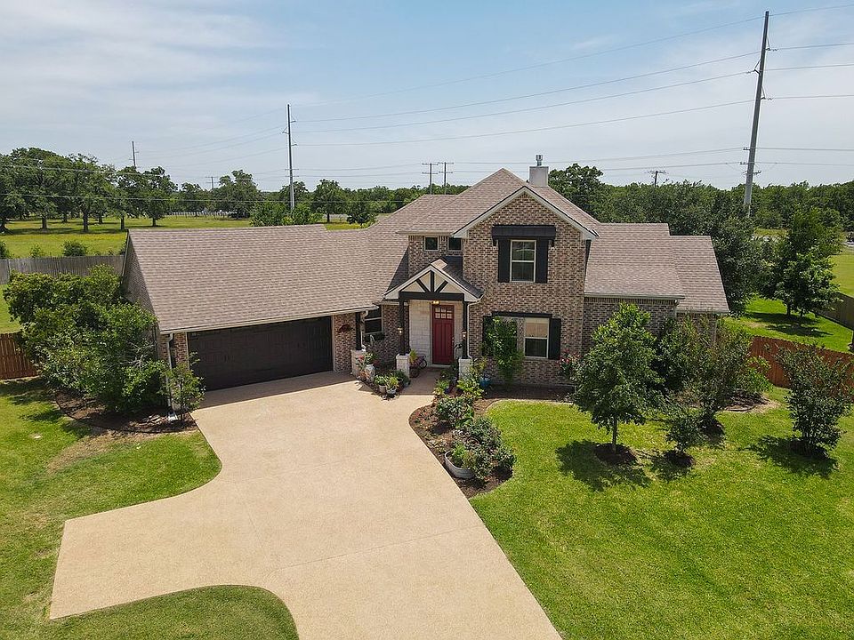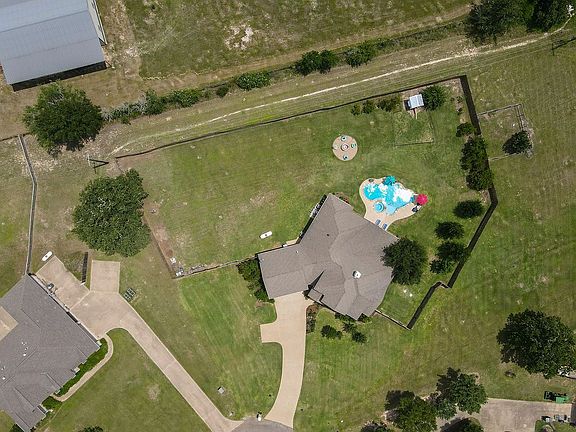 BRAND NEW ROOF! Established on nearly 2 acres surrounded by Texas native trees, this stunning custom-built home offers the perfect blend of elegance, functionality, and outdoor living. In-ground pool, a relaxing hot tub, and a fully equipped outdoor kitchen with a built-in gas grill. The expansive covered patio features a rich wood-paneled ceiling, creating a warm and inviting space for gatherings. Open-concept layout with soaring vaulted ceilings in the main living area, complemented by beautiful wood-like tile flooring throughout the main floor. Abundant natural light and modern conveniences like automatic blinds in all downstairs rooms. The gourmet kitchen includes a large island with ample seating, a gas range, double ovens, and extensive built-in cabinetry throughout entire home. A cozy double-sided gas fireplace adds charm to both the living and formal dining rooms. The split floor plan offers privacy Primary bathroom includes double vanity sink, oversized garden tub, and a walk-in tile-surround shower. The walk-through primary closet offers exceptional built-in storage and cabinetry. Front flex room perfect for a home office, library or extra bedroom . Two versatile flex spaces upstairs—great for a media room, gym, or playroom. Fully fenced backyard with charming fire pit area, perfect for cozy evenings outdoors. Bentwood Estates also offers an outside pavilion overlooking a beautiful body of water for family and friend gatherings.