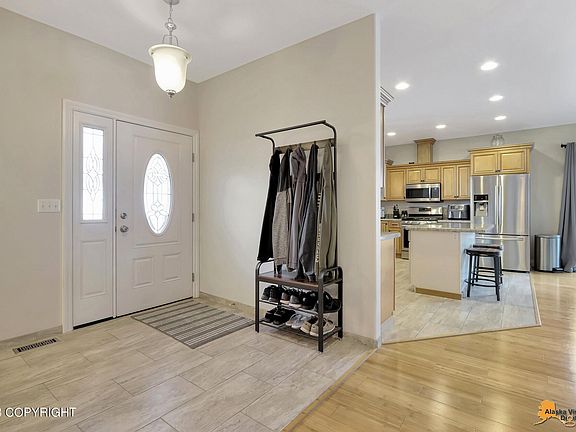 Immaculate well cared for Chugiak Home! This 3bd 3bth home is nestled on over an acre with gorgeous views. Established RV parking. Open concept living, dining & kitchen with SS appliances. Spacious rooms and master suite all on the main floor. Gorgeous garage complete with epoxy floors and built in cabinets/counter. Bonus space downstairs with bath and oversized laundry with endless possibilities.