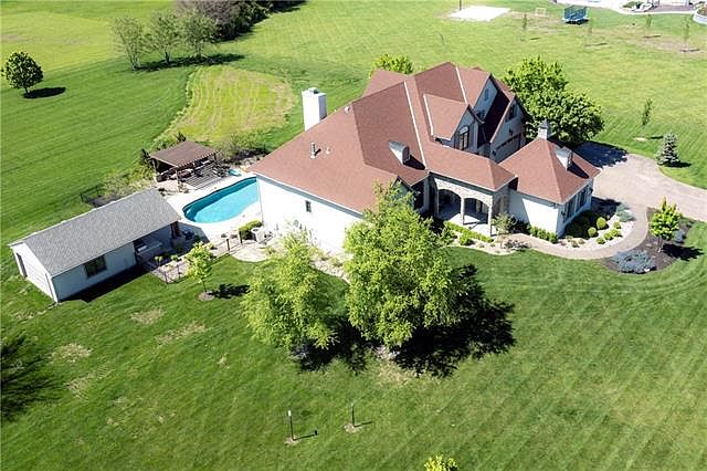 Absolute dream house on private 3.6 acres in highly sought after Sycamore Springs Estates subdivision! Resort style living at home with gunite pool, pergola, fire pit, grilling area, pool building, outdoor TV area with walk-up bar and neighborhood fishing lake a short walk away! Open 1.5 story floor plan with appx. 6,000 very usable square feet features: huge vaulted hearthroom with beams and floor-to-ceiling stone fireplace, two story foyer, first floor office, front and back staircases, large master suite with vaulted ceilings and see-through fireplace, laundry chute and all walk-in closets! You'll love the recently updated walkout lower level with impressive wet bar, theater room, wall of windows overlooking pool and guest bedroom! Car lover's dream with 2 car attached garage with epoxy floors and additional detached 2 car garage matching the house! Blacktop roads all around. Priced far below reproduction cost! 2021-06-20