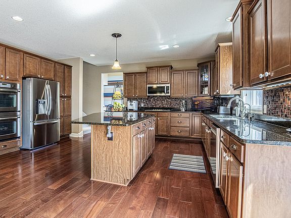 Welcome to this stately 2-story home located on a serene lot offering year-round privacy and scenic pond views. Enjoy the multiple community pools, putting green, nearby Gleason Park, trails and close to 2 dog parks! Gracious open floor plan. Gourmet kitchen features large center island! Great room with wall-of-windows for abundant natural light. Office boasts elegant double doors. 4 bedrooms on upper level plus loft area. Luxurious primary suite with sitting room, plus huge bathroom including double sink vanities, private water closet and 2 walk-in closets. Quality custom finished lower-level walk-out with dramatic wet bar, 5th bedroom, bathroom, recreational/billiards, theatre projector/screen, exercise room/craft room with French doors and under step play niche. Sauna. Large storage room. Main level deck with steps to stunning paver patio! Fenced backyard. New roof and hot water heater.