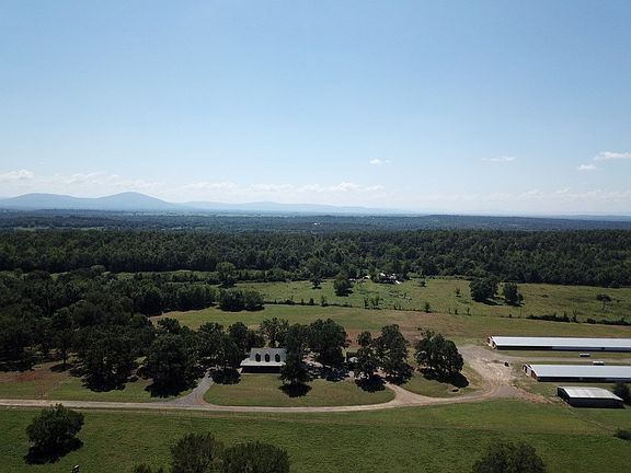 Location: This property is located at 18087 Poker Bend Road Cameron, Ok 74932. The property is located just minutes outside of the city of Poteau, Oklahoma, which is the county seat and is the main area of commerce for the area. Poteau has most necessary amenities including schools, grocery stores, churches and medical facilities. Poteau was also ranked as one of the top 100 cities in America to live. The larger city of Ft. Smith, Arkansas, population about 80,000, is roughly a 20-minute drive. There is excellent hunting, fishing, camping, hiking as well as a variety of outdoor activities surrounding the many local lakes, rivers and streams. The 1.5 million acre Ouachita National Forest is just a few miles to the South and offers excellent hunting for whitetail deer, eastern wild turkey, black bear and numerous small game animals. Services to Property: Electricity, rural water, septic system, lp gas delivery, phone, internet, and mail route. House: This beautiful log cabin style home was constructed in 2000 and contains approximately 1496 square feet of heated and cooled living space and has 2 bedrooms and 2 baths. The floorplan and design of this home would make it simple to convert the formal dining room into a third bedroom or office. The living area has 20 foot ceilings that could easily have an additional room built above it also. The home sits on a ridge dotted with large mature Red Oak trees that is at the highest elevation of the property and overlooks the pristine meadows of the property. There is a rock fire pit in the backyard perfect for gathering. The interior of home is very lodge like with rustic modern touches including solid wood doors, pine shiplap, rough sawn cedar accents, and log siding interior walls. This home is very well insulated, it is energy efficient and you cannot hear vehicles drive up outside. Living Room: 25.6" x 15.5" with 20' high vaulted ceilings that allow plenty of room for wildlife mounts and limitless decorating potential. Beautiful pine shiplap walls with rough sawn cedar base boards and moldings. Neutral carpet and white ceiling. The room has a large suspended chandelier and the room has five windows that allow natural lighting and excellent views to outside. There is a rough sawn cedar staircase with storage closet underneath that leads to the upstairs master bedroom. Kitchen/ Dining. 25.6" x 15.6" The kitchen has pine shiplap and barn wood red accent walls. custom built cabinetry with nice counter tops with tiled backsplash. The Kitchen has stunning natural stone floor and comes complete with stainless steel refrigerator, stainless steel stove and stainless steel microwave. There is pantry in the kitchen for food storage and there is a large island with a bar on the backside for dining. There window above the double sink offers great views to the backyard. The dining room has neutral carpet floors and two walls are log siding and one accent wall is pine shiplap with rough sawn cedar baseboards and crown moldings. Two large windows looking out to front yard and the pasture. Master Bedroom: 22.6" x 18.6'. The master bedroom floor is covered with neutral gray carpet and there is a ceiling fan/light. The walls are textured sheetrock painted white. The south wall has storage all the across. Walk in closet, this is a very neat room. Master Bathroom: The master bathroom has a giant jaccuzi tub, sink with vanity lights and toilet. The floor is neutral tile flooring. There is a window with great views outside Bedroom #2: 12.5 feet x 11.5 feet. There is a ceiling fan with light. Pine shiplap walls and a rough cut cedar accent wall. The floors are a neutral gray tone colored carpet. This room has a ceiling fan/light and a nice closet with solid wood door. Bathroom #2: Giant walk-in tile shower, tile floors, sink with large vanity mirror and toilet. The walls are textured and painted white with rough cut cedar trim. The wall above the vanity is knotty pine shiplap. Window to backyard with wooden blinds. Laundry Room: The walls and ceiling are painted and textured and the floor is tile matching the second bathroom. There are rustic pine cabinets above the washer and dryer and also there is a gas hot water heater in the laundry room. Wrap around Porch: There is a 10-foot-wide covered porch that wraps around the entire house. Lots of area to sit on the porch and watch kids play in the yard or to have morning coffee while watching cattle graze in the fields below. Deer and other small game are frequently seen from the porch. Ponds/Water: There is a very large pond for livestock to drink from that has been adequately stocked and provides excellent fishing right out your front door. There is a second pond on the place that offers excellent fishing, water for wildlife and livestock. There is a seasonal creek that runs thru this property. There are also several water wells located in different areas of this farm that have been capped off but could be easily used again. Storage Buildings: There is a 24' x14' log sided storage building that sits on concrete slab. There is also an older 12 x 18 portable type storage building. Detached carport: 18' x 20'. Additional Slab: There is an approximate 36' x30' concrete slab with foundation that currently serves as a basketball court but could have a new structure built upon it. Pool: 24-foot round above ground pool in the backyard. BARNS: Two 43' x 520' commercial poultry houses that would make for excellent hay storage, shleter for livestock, or a place to keeo equipment out of the weather. They have a red metal fascia that give them an appealing look. Corral/ Working pens: almost new set of corrals with holding pen, crowding tub, and a very nice squeeze chute. There is the added bonus of a light pole, electricity, and water at the corral. Land/Pasture: The land is approximately 80% pasture and 20% wooded with scattered shade trees and thicker areas that are excellent for wildlife and shade for livestock. The owner has har