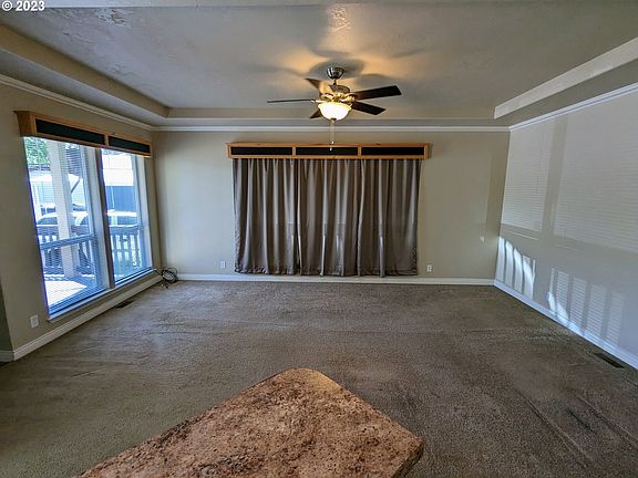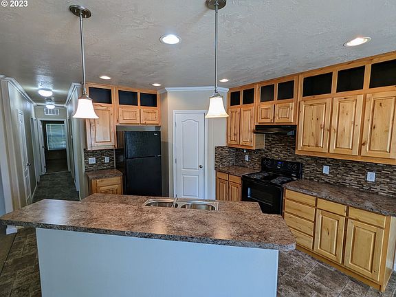 FOR SALE is a quality double-wide manufactured home built in 2014 on a foundation, and located in the desirable Stonewood Mobile Home Park in La Grande, Oregon. Featuring a front deck, attached carport, fenced backyard and storage shed outside, and a modern, open kitchen and living room with high ceilings inside. There's tons of cabinet and counter space in the kitchen and both bathrooms, and the master suite includes a large closet and large vanity with double sinks. And all appliances are included! Contact your agent today for more information, or to set up a showing.