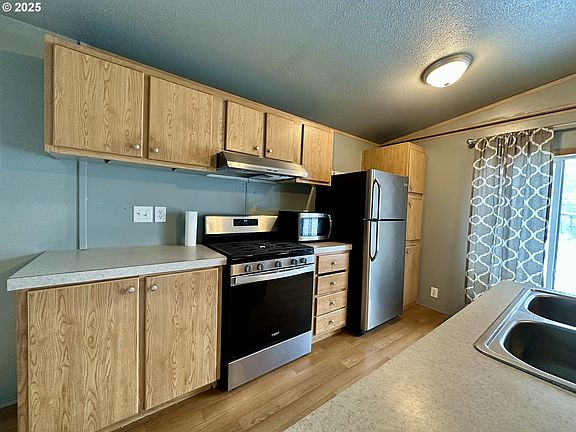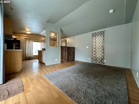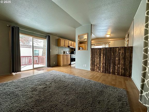 Nestled in Stonewood Park in La Grande, OR is this well-maintained, move in ready, single wide manufactured home. Offering an open concept kitchen/dining area with newer kitchen appliances and custom touches. The large windows and sliding glass door provide natural light into the spacious living area which is thoughtfully situated for a well-functioning common space. Tucked away down the hall are two bedrooms, a full bathroom, and laundry space. Washer and dryer included! Enjoy the warm weather on the large, enclosed deck that is accessible right from the living room. This property also comes equipped with a storge shed. Space rent for this home is $695/ month. All buyers must be approved with the park prior to purchase. Ask your agent for details, and schedule your showing today!