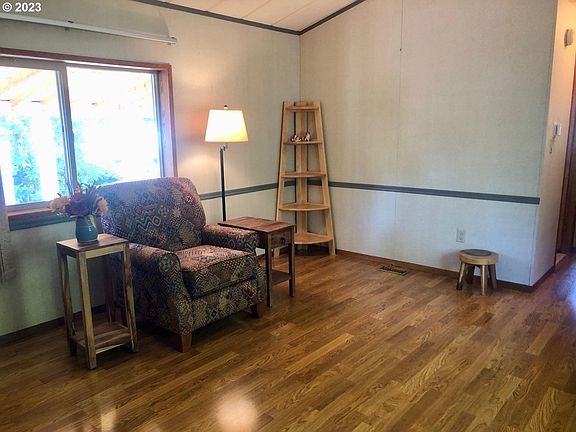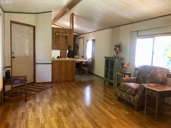 Peaceful living at an affordable price. If you have been looking for a financeable, well maintained, two bedroom, two bath home. Look no further than this 1988 manufactured home with vinyl windows, metal roof, laminate flooring, and all appliances included!. It's very neat, clean and ready to move into. Primary bedroom has it's own bath with a soaker tub, the yard has privacy, shrubs, trees, and a newer one car carport. Park space rent is $595 per month and includes garbage removal. This home has a great location across from the park office, swimming pool, and mailboxes. Call today for more information, or to set up a showing.