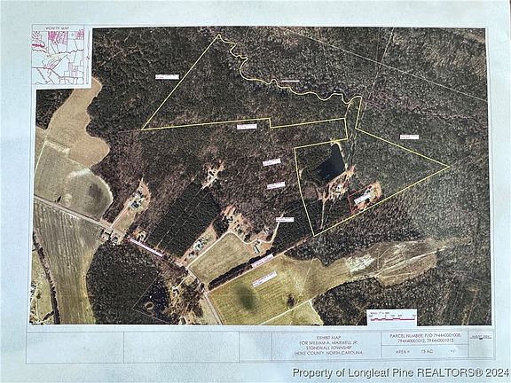 Located off Arabia Rd. 75+/- acres and 1500+ sq ft ranch style, well maintained brick home. Private living with access to Rockfish Creek. 3BR 2BA updated home with county water. Exterior of home features a front porch and spacious deck with a wired shop and additional covered parking. New roof in 2020. Interior features include new paint and carpet in bedrooms in 2022 as well as LVP in both baths with master bath upgrade. Kitchen has quartz countertops and stainless appliances. Large laundry/ pantry area. Home Security system. This tract with home is well suited for the outdoor enthusiast with private hunting and fishing opportunities right in your back yard. Deer, turkey and small game are abundant. Water and electric on site for maintaining a potential 4 acre pond. This property is located just a few miles from Raeford and approximately 30 minutes from Ft. Liberty, Fayetteville and Southern Pines. Property is currently under land use with harvestable timber. Additional acreage available.