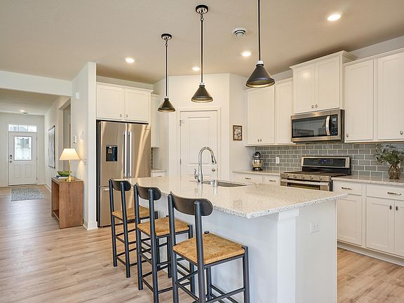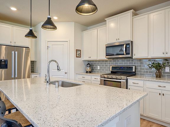 One Level Living - Mint Condition - Easy Lifestyle. Association Maintained. 2021 Custom Built One Level Villa. Absolutely gorgeous and in mint condition. This home boasts many upgrades and amenities: An oversized 3 car garage. A covered concrete patio area. Situated on a large lot with ample yard space. A grand open design kitchen with Quartz countertops, stainless steel appliances, a walk-in pantry and a subway tile backsplash. A family room with a shiplap surround gas fireplace. The large primary owners suite has two walk-in closets and a private bath with dual vanities and a custom tile shower. There are two additional nice size bedrooms, a full bathroom and main floor laundry room. Luxury Vinyl Tile throughout. Solid Surface vanity and kitchen countertops. Fantastic and convenient location in close proximity to Chaska, Shakopee and Prior Lake. Abundant nearby nature preserves, bike and hiking trails, and lakes.