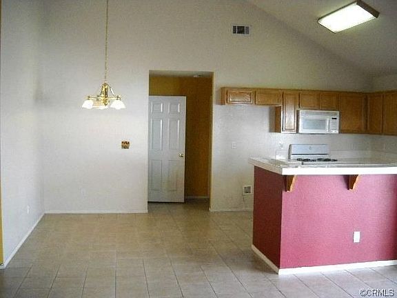 Cute 1 Story home In South Redlands. Living Room with Very High Ceilings and Fireplace. Fully Appointed Kitchen with Microwave, Gas Range, Dishwasher, Breakfast Bar and Eating Area, all with tile flooring. Master Suite with bay windows with shutters and the private bathroom with separate shower, tub, his/her sinks and Walk-in Closet. Both Secondary bedrooms also have Walk-in Closets. Inside Laundry Room with plenty of space and door leading to the attached 2 car garage. Large Backyard with covered patio, spa (sold "as is"), firepit and View of the Mountains. Central air and heat and looking for a new owner. See photos..