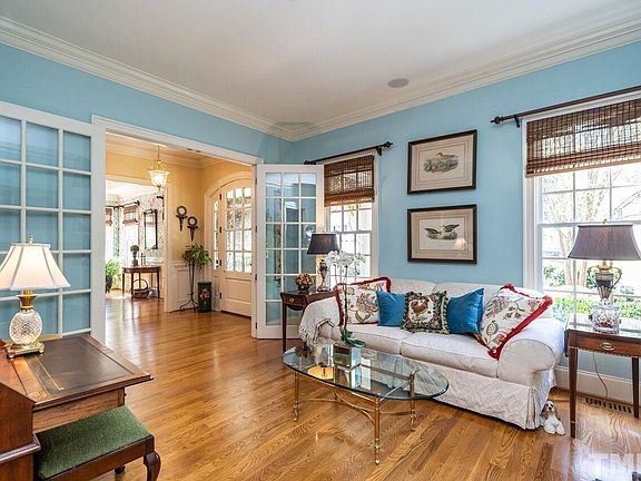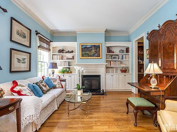Inviting front porch welcomes you into this attractive Budleigh home located just minutes from Banbury Park! Incredible entertaining plan offers 10' & 9" clngs; shining hdwds; wet bar & butler's pantry; 2 FP's; spacious FR w/custom built-ins which opens to the chef's kitchen, with stone tops, plentiful cabinets, & the luxury brands you expect: Sub Zero, Meile, Wolf. Convenient main floor owners' suite; upstairs bonus & workout/rec room space are perfect for busy kids. Best schools, terrific location, too!