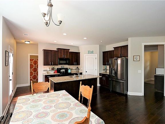 - Kitchen Features: Cabinets Stain, Eat-in Kitchen, View to Family Room, Stone Counters, Kitchen Island, Pantry Walk-In
