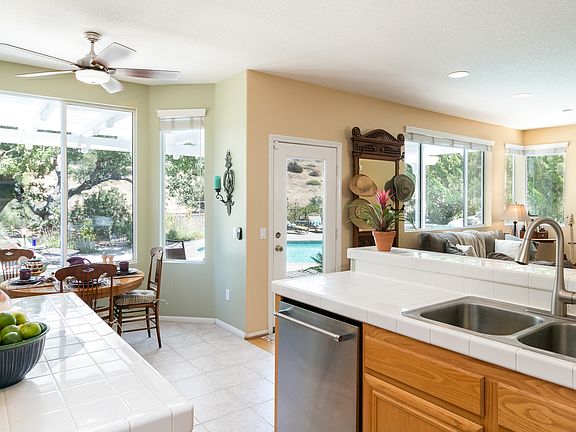 4 bedroom 3 Bath home. Incredible Views from most every room. The Tranquil setting offers you an entertainers backyard with a new built in BBQ, waterfall, updated salt water pool & spa, Fire pit, plus a new orchard with several fruit trees, and large Majestic Oak Trees. Additionally, the home has a large green space abutting it on 2 sides of the lot you offering the utmost in privacy. New hardscape, front and back of the home make it drought tolerant. More Features A Dramatic Spiral Staircase greets you at the entrance,Downstairs Bedroom and bath with Walk-In Closet perfect for office, or guest room, Hardwood Floors, Plantation Shutters, New carpet, Large Island, Double Oven, Gas Cooktop, Walk-In Pantry. Upgraded, new backsplash, entire new appliance package, + breakfast nook with a bay window Large Island, Double Oven, Gas Cooktop & Walk-In Pantry. Formal Dining Room, 2 Family Rooms – 1 downstairs 1 up, Master bedroom: Super large Master Suite, huge master bath with jetted bathtub that has a view, Huge walk-in closet. New Dual A/C & Heat & duct work. Units moved away from home for noise reduction, New Washer & Dryer, All new energy, efficient pool equipment, 25 new solar panels (not Leased)